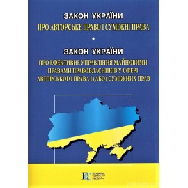 Всі закони України та кодекси України в редакції останніх змін і доповнень! Текст Закону України "Про авторське право і суміжні права" Закону України "Про ефективне управління майновими правами правовласників у сфері авторського права і (або0 суміжних прав" відповідає офіційному тексту сайта Верховної Ради України, а також тексту, який опублікован..